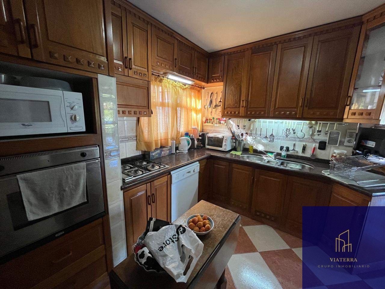 Cocina separada por barra desayunadora , horno empotrado y amoblamientos completos